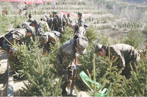 兵站部官兵進行參與西寧南北山綠化