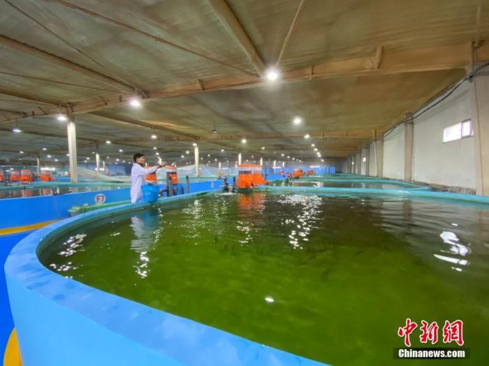 資料圖為2020年12月28日拍攝的青海湖裸鯉救護(hù)中心循環(huán)水恒溫育苗車間。 中新社記者 李江寧 攝