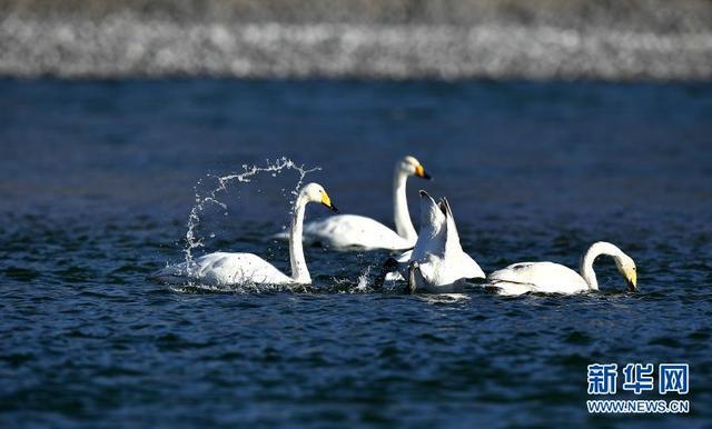 隨著氣溫回暖,位于青海省海南藏族自治州貴德縣境內(nèi)的黃河成為大天鵝的越冬“港灣”,它們?cè)诖艘捠?、休憩,為冬日的黃河帶來(lái)勃勃生機(jī)。