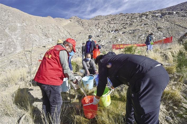 拉薩市林草局組織開(kāi)展植樹(shù)活動(dòng) 圖/記者 阿旺尼瑪