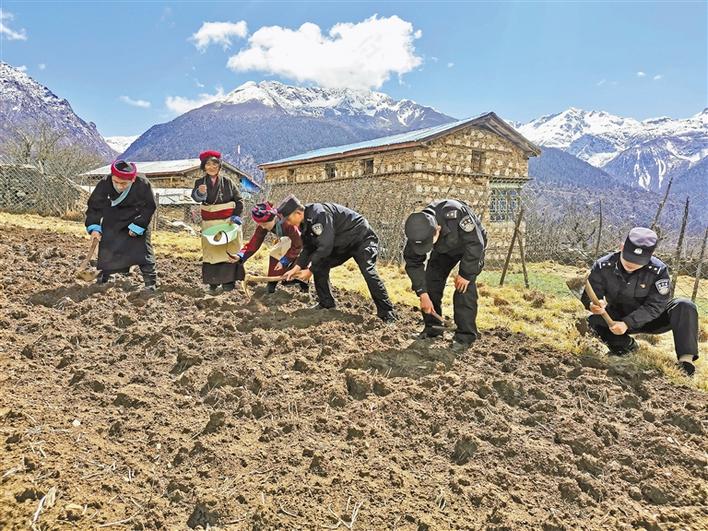 正值春耕時節(jié),山南市錯那縣吉布鄉(xiāng)到處一派熱火朝天的農(nóng)忙景象。為確保轄區(qū)春耕生產(chǎn)順利進行,山南邊境管理支隊吉布邊境派出所移民管理警察走進田間地頭,幫助缺少勞動力的農(nóng)戶春耕。