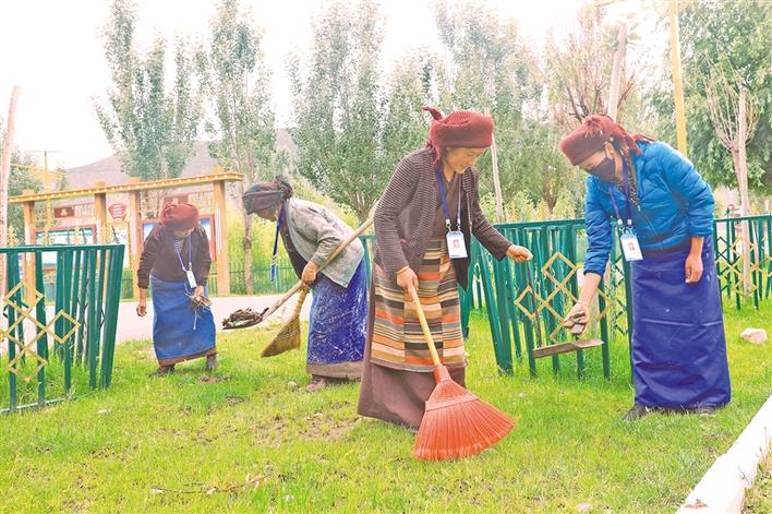 圖為墨竹工卡縣工卡鎮(zhèn)塔巴村環(huán)保監(jiān)督員們在打掃轄區(qū)衛(wèi)生。記者 格桑倫珠 通訊員 洛克 攝