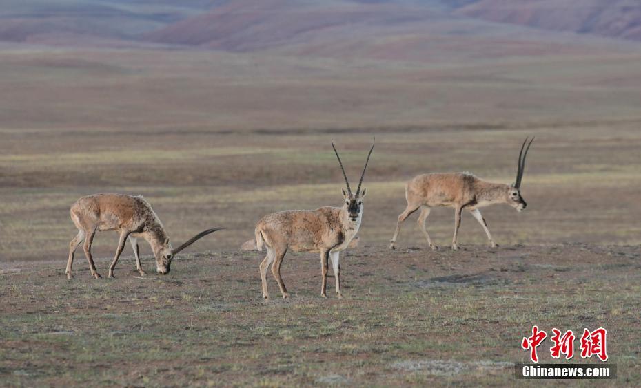 6月17日,西藏那曲羌塘草原上的藏羚羊。羌塘草原位于西藏自治區(qū)北部,平均海拔超過(guò)4600米,是目前中國(guó)海拔最高、面積最大的自然保護(hù)區(qū)。這里是野生動(dòng)物的樂(lè)園,藏羚羊、藏原羚、藏野驢等珍稀野生動(dòng)物與雪山、草地、藍(lán)天、白云,構(gòu)成撼人心魄的壯美畫(huà)面。 中新社記者 貢嘎來(lái)松 攝