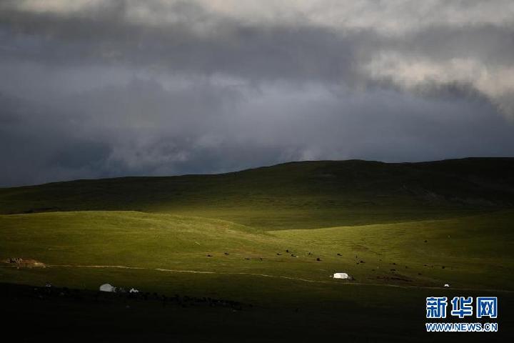 這是8月3日在青海省果洛藏族自治州瑪沁縣當洛鄉(xiāng)貢龍村拍攝的夏季草場。新華社記者 張龍 攝