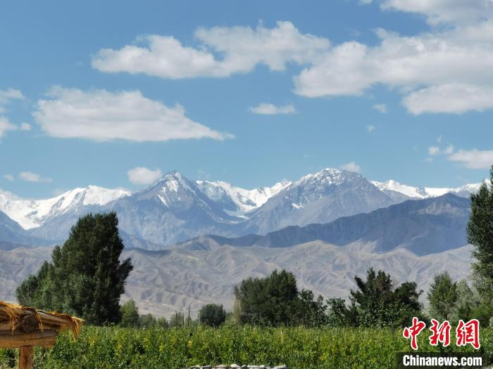7月下旬,酒泉市肅州區(qū)祁連山覆蓋白雪與藍天白云相映成趣。(資料圖) 張婧 攝