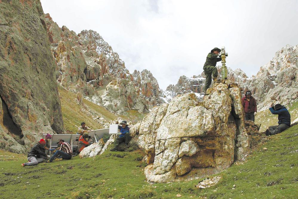 “邂逅”雪豹。(圖片除署名外均由三江源國(guó)家公園管理局提供)