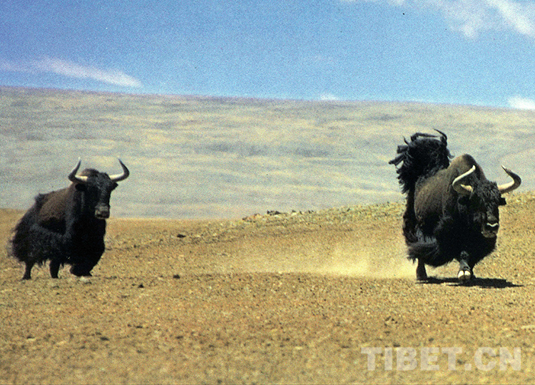 性情強(qiáng)悍的野牦牛傳宗接代的方式也是驚心動魄的。每年的七八月份是野牦牛的發(fā)情交配季節(jié)。雄性野牦牛相遇,必然展開一場激烈的角斗,勝利者獲得對雌性野牦牛的占有權(quán),戰(zhàn)敗者只能灰溜溜地落荒而逃。