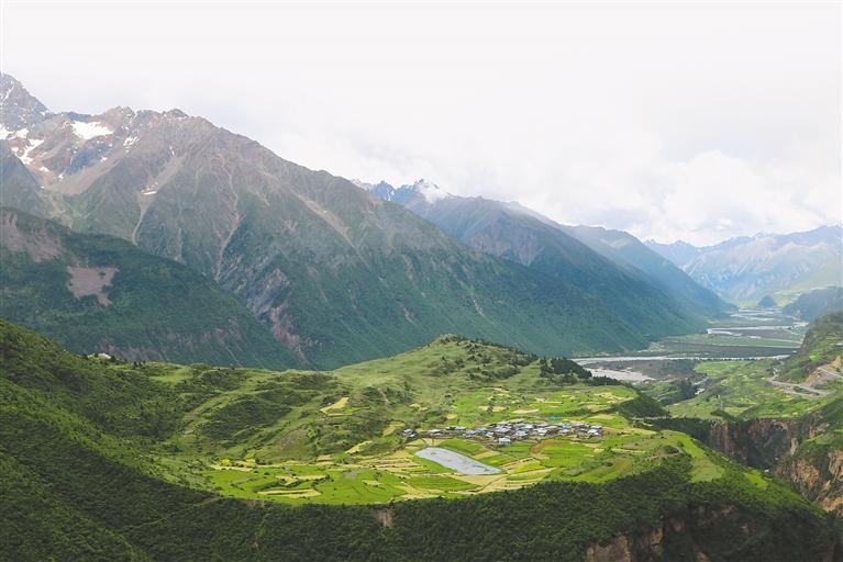 圖為7月11日遠(yuǎn)眺邊壩縣金嶺鄉(xiāng),滿目綠色、植被繁茂。記者 桑鄧旺姆 攝