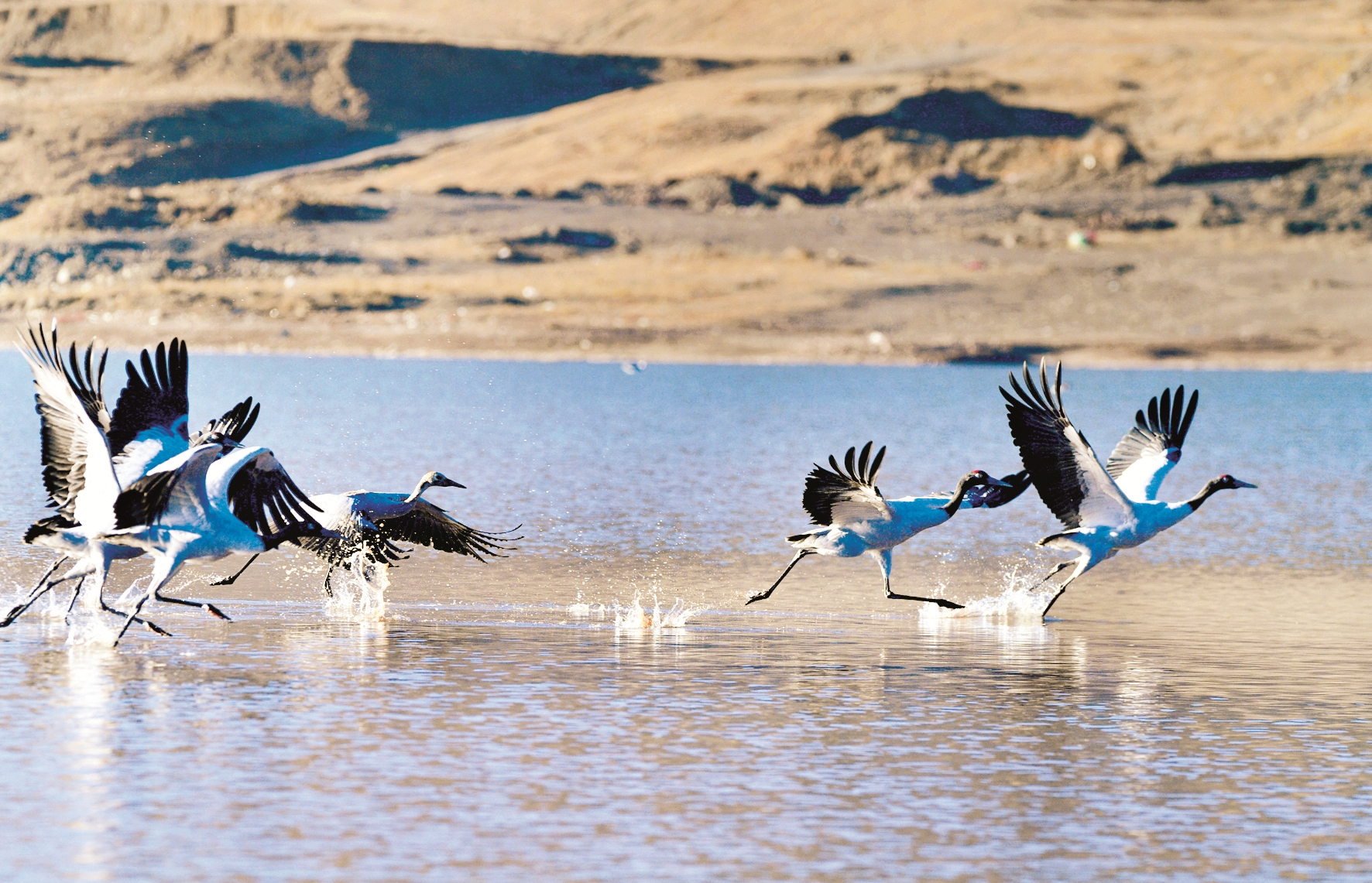 近日,來到拉薩市林周縣的黑頸鶴已達(dá)1500只左右,這里成為黑頸鶴越冬的樂園。