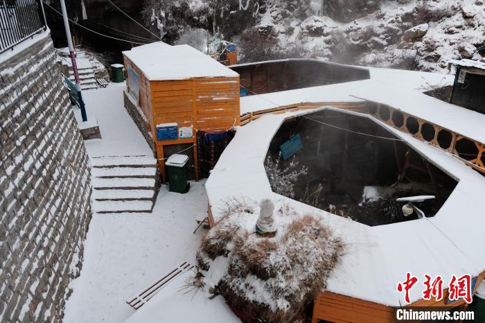 冬日,德仲溫泉周邊被積雪覆蓋。25日深夜,記者體驗時,溫泉池內(nèi)水霧繚繞,抬頭便可以看到夜空中星星閃爍,十分奇妙。