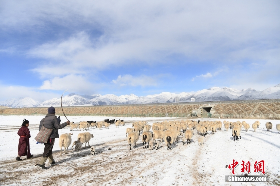 1月27日,當(dāng)雄縣龍仁鄉(xiāng)烏達(dá)村牧民在雪中放牧。當(dāng)雄縣位于西藏自治區(qū)拉薩市北部,距拉薩市區(qū)170公里。“當(dāng)雄”,藏語意為“天選牧場(chǎng)”,平均海拔約4200米,草場(chǎng)廣闊,土地肥沃。 中新社記者 貢嘎來松 攝