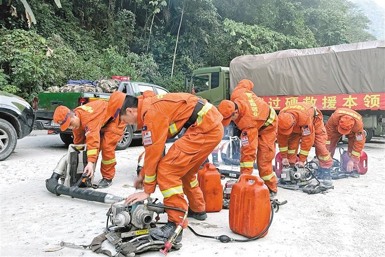 圖為在重特大森林火災(zāi)長途機(jī)動滅火增援實戰(zhàn)演練過程中,消防救援人員對裝備進(jìn)行檢查維修。圖片由昌都市森林消防支隊提供