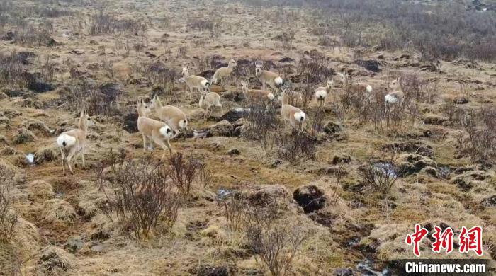 圖為藏原羚種群們?cè)谏狡轮行蓓!〔苊皴| 攝