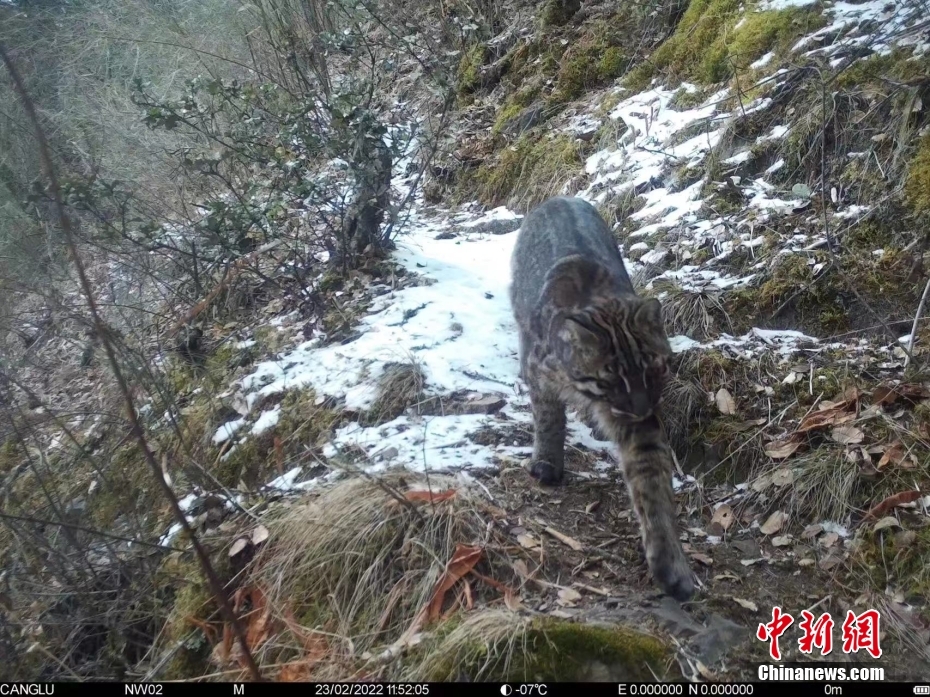 5月17日,記者從西藏自治區(qū)那曲市林業(yè)和草原局獲悉,在該局和山水自然保護(hù)中心聯(lián)合開展的那曲生物多樣性調(diào)查項(xiàng)目中,首次在那曲市嘉黎縣記錄到了國家一級保護(hù)動(dòng)物金貓的活動(dòng)影像,填補(bǔ)了那曲市的金貓分布空白,并且4300米也是迄今為止金貓?jiān)谌虻淖罡叻植己0斡涗?。圖為2022年2月紅外相機(jī)拍攝到的金貓影像。 中新社發(fā) 山水自然保護(hù)中心 供圖