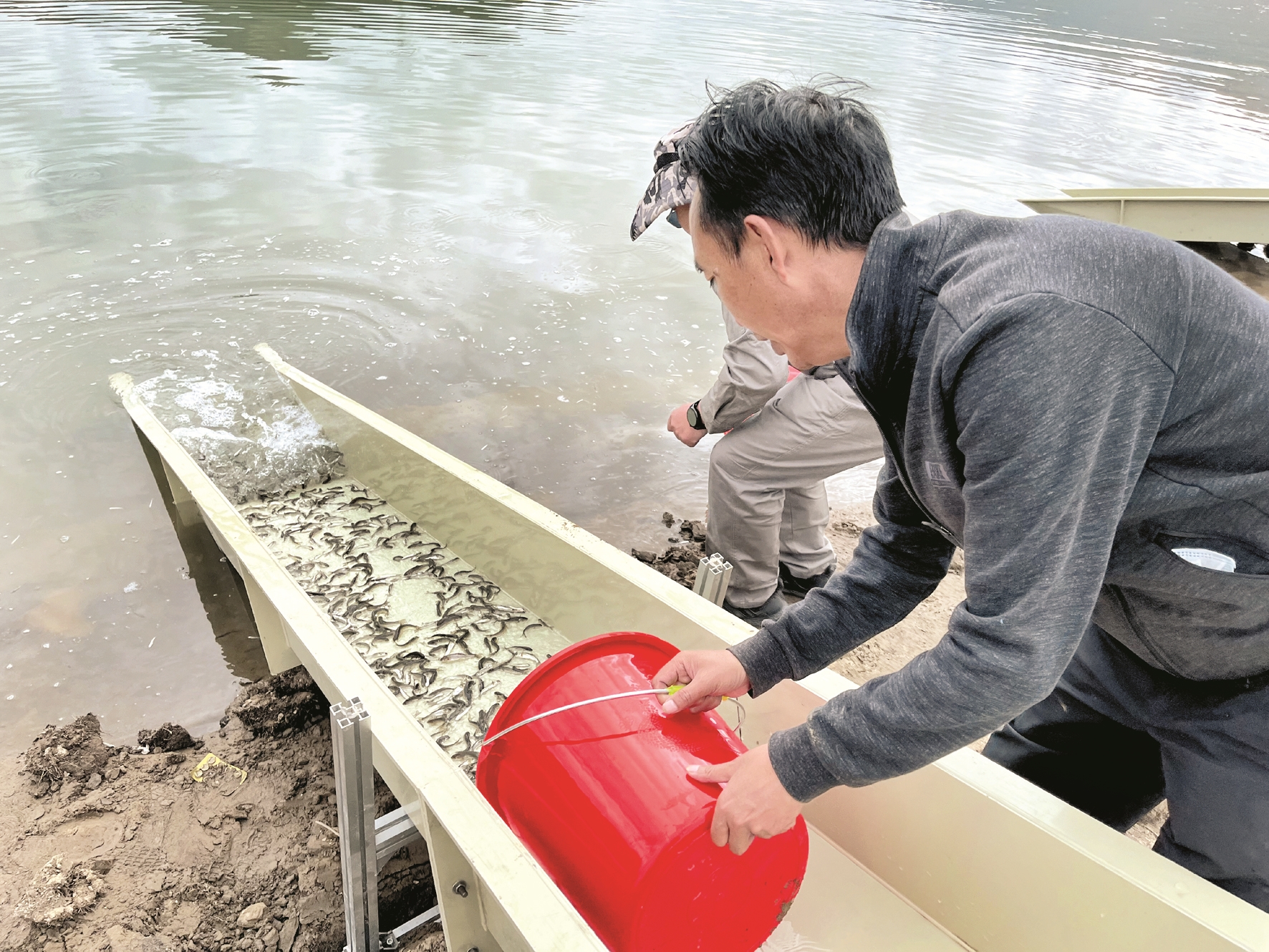 活動現(xiàn)場,大家熱情高漲,一尾尾活蹦亂跳的魚苗從工作人員的手中躍入水面,月余齡的魚苗守護著旁多水庫,清澈的水面迸發(fā)出了勃勃生機。在此次活動中,工作人員共放生50萬尾魚苗,均為符合旁多水庫流域水生條件、并具有良好凈水功能的濾食性魚類,有利于保護生態(tài)環(huán)境,并達到“以水養(yǎng)魚、以魚凈水、以魚護水”的生態(tài)效果。