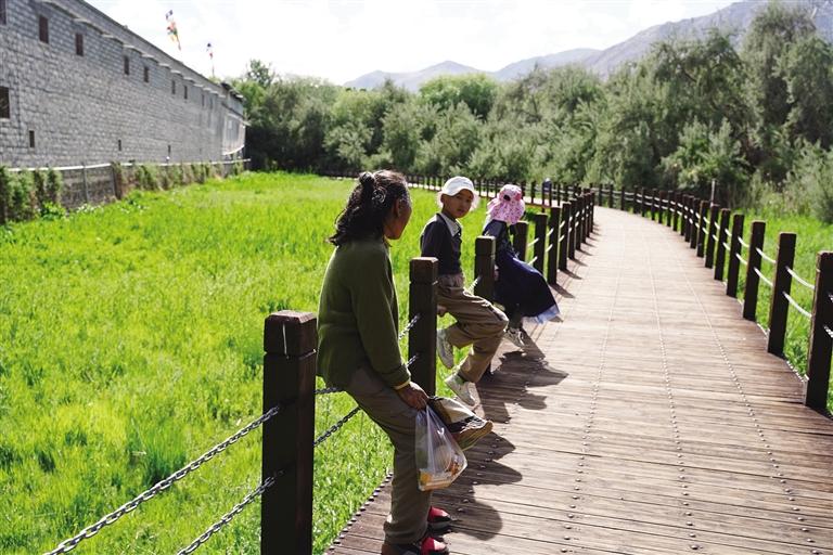拉薩濱河公園是依托拉薩河3號(hào)閘建成的一處寬闊的濱水景觀和生態(tài)濕地長廊,在這里不僅能看到水光瀲滟的拉薩河,還能漫步在健步道欣賞沿途風(fēng)景。順著步道往里走,道路兩旁花朵開得嬌艷,在綠葉的映襯下閃爍著耀眼的光彩。來到球場(chǎng)邊,目光隨著那群年輕的身影轉(zhuǎn)動(dòng),他們身姿矯健,在奔跑追逐中揮灑汗水,洋溢著青春的活力。