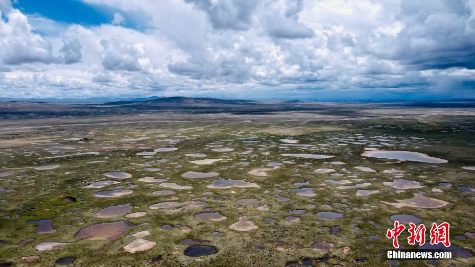 6月18日,航拍長江源區(qū)最大泥碳濕地——查旦濕地。查旦濕地地處青海省玉樹州雜多縣境內(nèi),唐古拉山北麓與瀾滄江西源扎曲形成的一個(gè)夾角。由于受南亞季風(fēng)的影響,每年5月至9月之間形成豐沛的降水,從而濕地廣布,河流縱橫,被稱之為“青藏水鄉(xiāng)”,長江南源當(dāng)曲(意為沼澤河)發(fā)源于此。 李江寧 攝