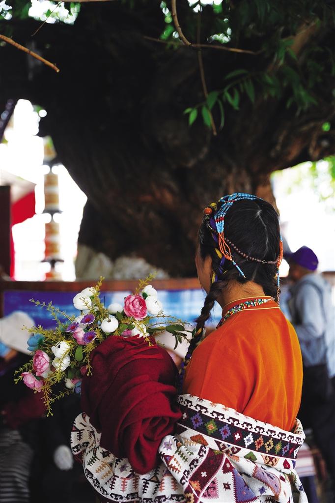 走在熙熙攘攘的八廓街,古樹已經枝繁葉茂,陽光很難穿透密集的葉子,只能勉強擠出幾束光,碎落在古樹下乘涼的老人腳下。樹下拍照的游客自成一道風景,享受著高原夏日的美好時光。
