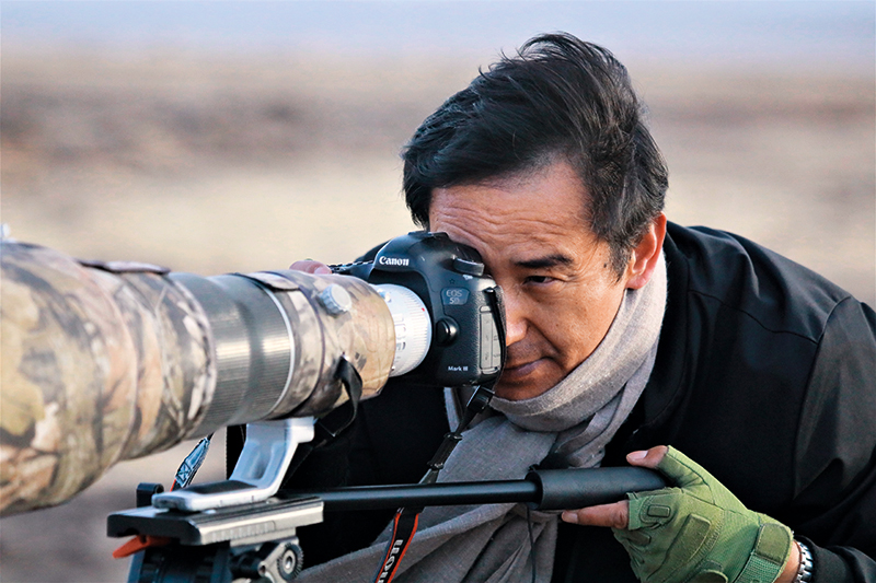 夕陽西下,大風(fēng)肆虐。49歲的才項南加系上圍巾趕忙下車,從后備箱包裹嚴(yán)實的毛毯里拿出相機和三腳架,稍做調(diào)試后,便扛著裝備三步并作兩步地趕往200米外的一片濕地?!摆s緊去看看,兩只黑頸鶴在喝水呢!”他說。