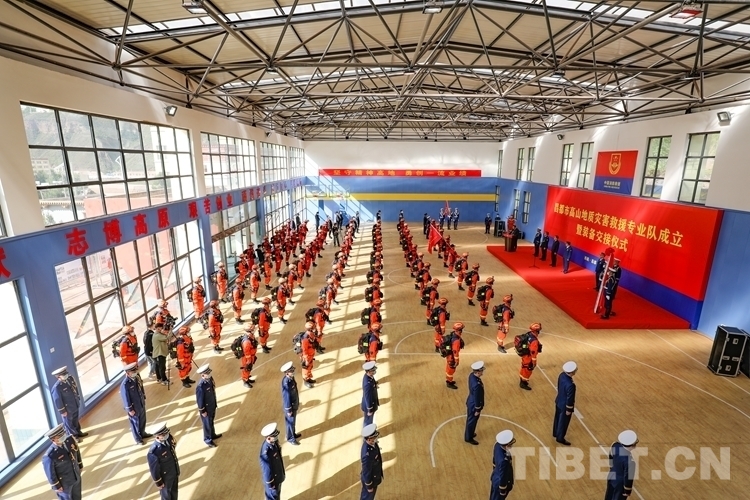 圖為昌都市高山地質災害救援專業(yè)隊成立暨裝備交接儀式現場