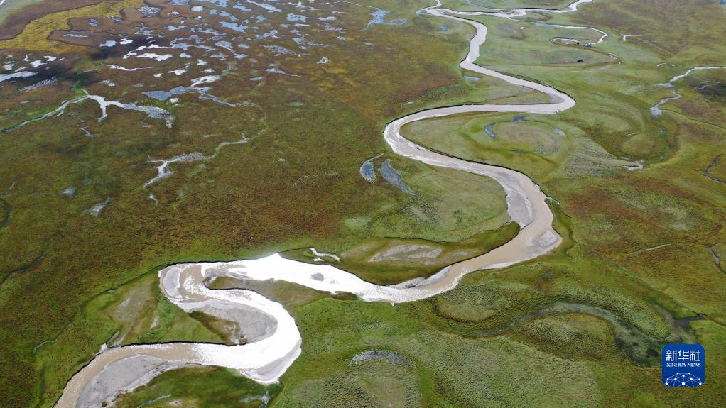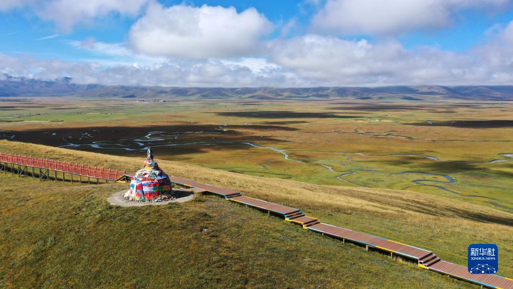 這是2022年9月21日拍攝的瑪曲縣阿萬倉(cāng)濕地(無人機(jī)照片)。新華社記者 陳斌 攝