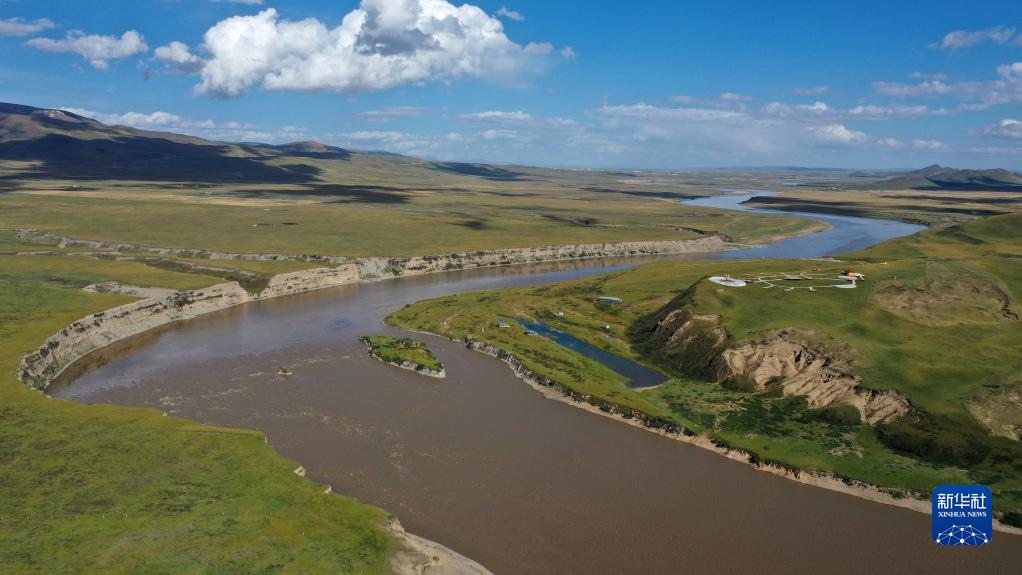 黃河流經(jīng)甘肅省甘南藏族自治州瑪曲縣境內(nèi)(2022年9月21日攝,無人機(jī)照片)。新華社記者 陳斌 攝