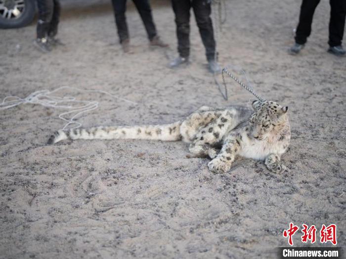 據(jù)駐村工作隊(duì)工作人員鄭殿之介紹,這只雪豹吃飽喝足后仍“賴在”羊圈,當(dāng)被牧民發(fā)現(xiàn)后,佯裝虛弱。被捕捉后,工作人員檢查無傷后,便將雪豹放歸了自然。