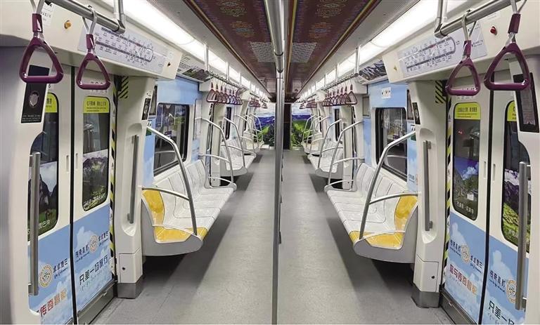 記者看到,在天津地鐵五、六號(hào)線文化中心換乘站點(diǎn)和地鐵一號(hào)線下瓦房換乘站點(diǎn),“昌都元素”已實(shí)現(xiàn)全覆蓋?!敖虿孛褡鍒F(tuán)結(jié)號(hào)”主題列車經(jīng)過精心打造,充滿濃濃“西藏味”,通俗易懂的宣傳語(yǔ)讀起來(lái)朗朗上口、充滿視覺沖擊力的照片震撼人心。地鐵站臺(tái)層承重柱、地鐵屏蔽門、車廂內(nèi)門窗、車壁、頂部這些醒目位置,都布置了圖文并茂、通俗易懂的宣傳海報(bào)和標(biāo)語(yǔ)。