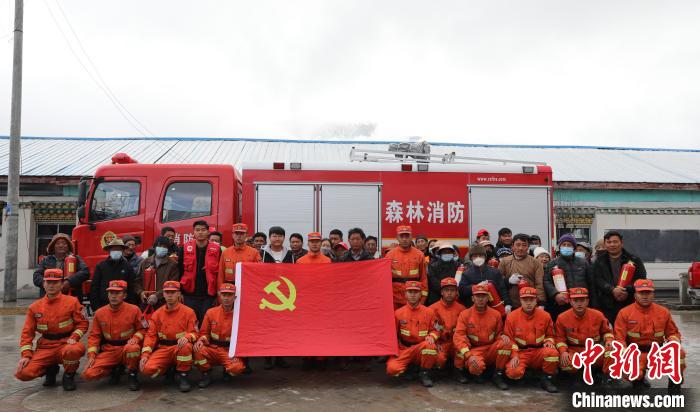 林芝市森林消防支隊巴宜區(qū)中隊消防救援人員與地方民眾合影留念。 西繞拉翁 攝