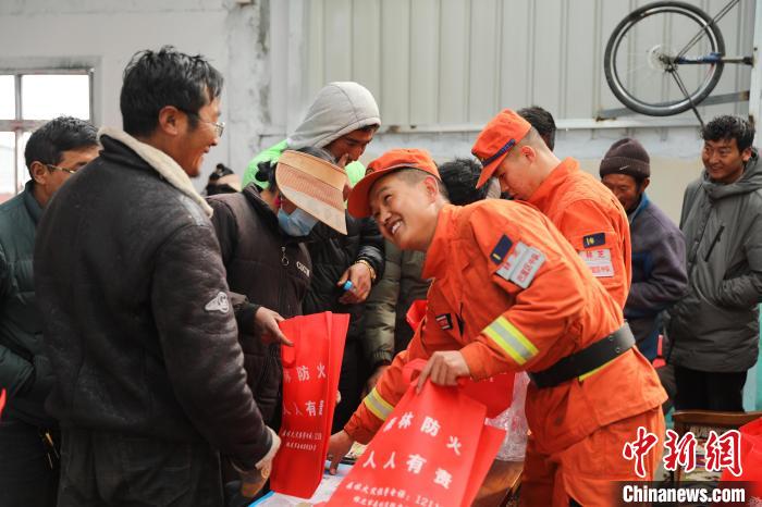 為民眾分發(fā)防火宣傳小禮品?!∥骼@拉翁 攝