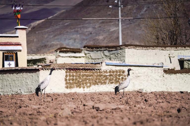 黑頸鶴是國家一級(jí)保護(hù)動(dòng)物,在藏語中稱為“沖沖”。主要棲息在海拔2500米至5000米的高原、草甸、沼澤地帶。拉薩北部的林周縣平均海拔約4200米,是黑頸鶴的主要越冬地之一。最近這段時(shí)間,對拉薩市林周縣野保員們來說,一邊要忙自家的農(nóng)活,一邊還要巡查候鳥情況。“已經(jīng)有一小部分飛走了,估計(jì)再過半個(gè)月都會(huì)陸續(xù)飛走?!?月23日上午,野保員旦增告訴記者,在虎頭山水庫和卡孜水庫越冬的候鳥有一部分已經(jīng)飛走了。野保員口中的“飛走”便是遷徙,遷徙是候鳥的本能,一年一年,跟隨時(shí)間的召喚,完成兩次遷徙:繁殖和越冬。