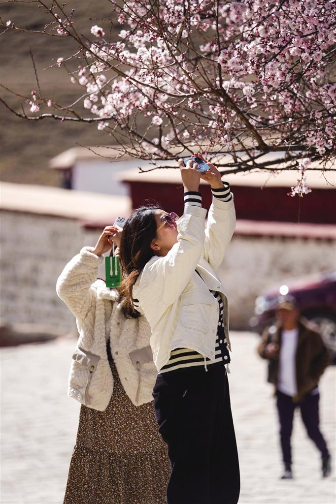 帕邦喀距離拉薩市區(qū)不到一小時(shí)車程,每年桃花盛開的時(shí)候,帕邦喀便成為人們賞桃花、踏春游的熱門景點(diǎn)。昔日里略顯安靜的帕邦喀此時(shí)也因賞花的人們熱鬧起來。帕邦喀桃花盛開的美景也在微信朋友圈、短視頻平臺(tái)等社交媒體上刷屏,吸引著大批市民游客拍照打卡。