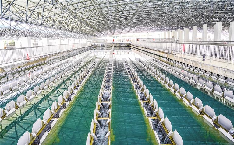 為了解居民的生活用水如何從大自然被搬運(yùn)到千家萬戶,記者驅(qū)車來到納金水廠一探究竟。據(jù)納金水廠副廠長(zhǎng)申雅薈介紹,納金水廠于2016年開始籌建,2019年投入使用,是一座高原規(guī)模最大、最具標(biāo)志意義的地表水廠。廠區(qū)建設(shè)用地面積為182.8畝,設(shè)計(jì)供水能力48萬立方米/日,輸配水管道132.2千米。目前,納金水廠作為主供水源為全市供水,平均日供水量為41萬立方米,承擔(dān)了全市約90%的供水重任。