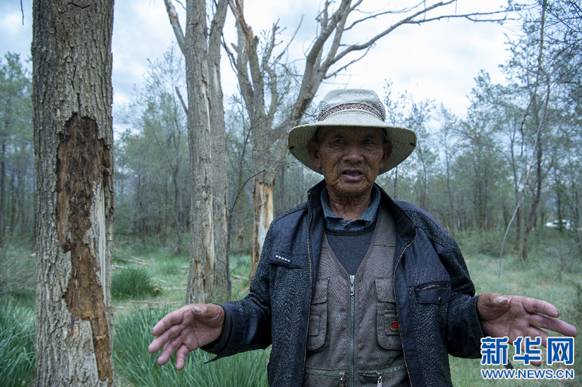 6月8日,索朗拉杰在介紹20多年前種的沙棘。新華網(wǎng) 旦增努布 攝