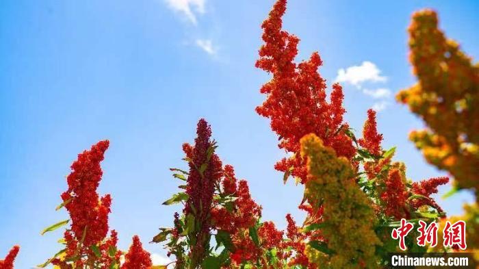 金秋十月,地處中國(guó)“聚寶盆”柴達(dá)木盆地腹地的青海省海西州烏蘭縣迎來(lái)藜麥成熟豐收季,姹紫嫣紅美不勝收。