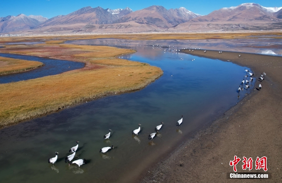 10月23日,成群的黑頸鶴在拉薩市當(dāng)雄縣阿熱濕地內(nèi)覓食。黑頸鶴是全球十五種鶴類中,唯一在高原地區(qū)繁殖和越冬的鶴類,屬中國國家一級(jí)保護(hù)野生動(dòng)物。 [詳細(xì)] -
