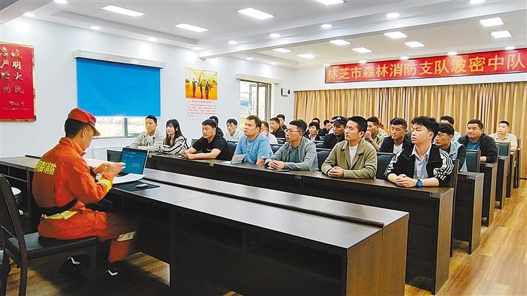 圖為林芝市森林消防支隊(duì)波密中隊(duì)的消防員為護(hù)林員普及緊急避險(xiǎn)和自救常識(shí)。記者 旦增蘭澤 通訊員 李國(guó)燾 攝