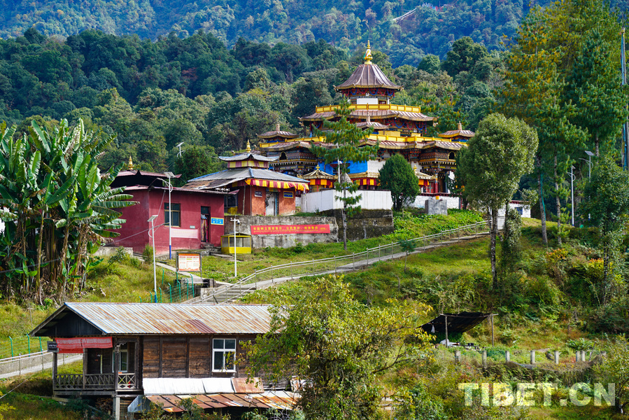 資料圖:位于墨脫縣的仁青崩寺被參天大樹(shù)環(huán)繞