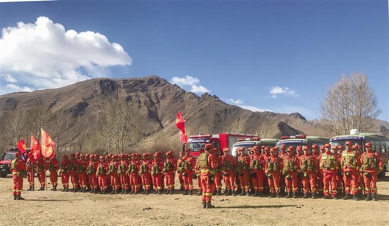 指戰(zhàn)員們?cè)诶毈F(xiàn)場(chǎng)集結(jié)。記者 桑旦歐珠 攝
