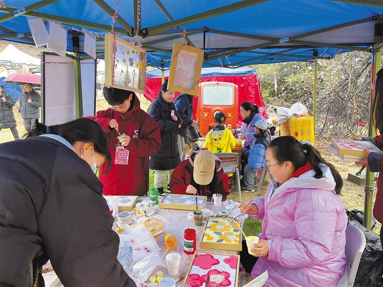 察隅縣桃花節(jié)的DIY活動(dòng)現(xiàn)場,參與者將盛開的桃花作為美術(shù)素材融入自己制作的肌理畫中。