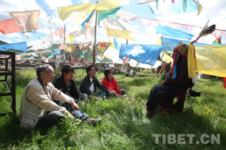 2010年,正當(dāng)我準(zhǔn)備前往西藏自治區(qū)林芝市墨脫縣采訪之際,嘉銘先生一個(gè)電話使我的西藏行改為了甘孜金馬草原行?!皭勖髦骶?,聽說甘孜州色達(dá)縣有好幾個(gè)‘格薩爾’藝人,一個(gè)伏藏,一個(gè)從石頭里說唱的女藝人!”他在電話里興奮得發(fā)出從未有過的高聲。“來吧!我陪你,我們一起去!”征得社長(zhǎng)同意,我立刻飛赴成都,坐上他早已聯(lián)絡(luò)安排好的越野車,直接趕往色達(dá)縣。沿途滿目都是兩年前大地震的痕跡遺留,觸目驚心,加上早些天的暴雨泥石流,到處都是落石,所幸我們時(shí)時(shí)安好。
