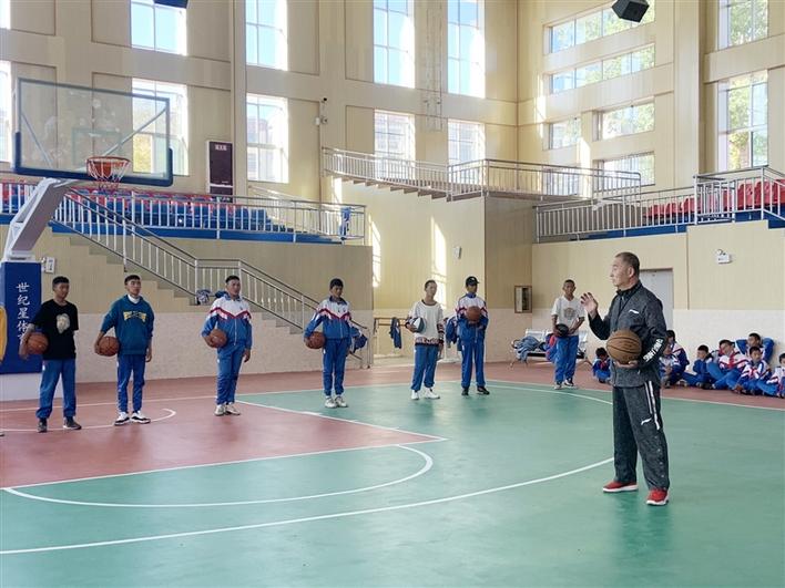 王志國給拉薩四中學生上籃球課