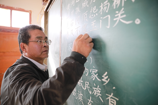 57歲的王建林是甘肅省白銀市會(huì)寧縣最偏遠(yuǎn)教學(xué)點(diǎn)——常山教學(xué)點(diǎn)唯一的老師。