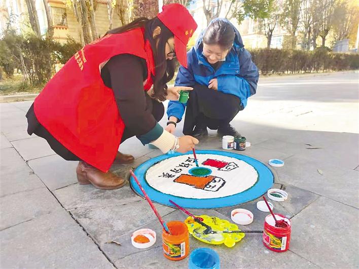 拉薩城關(guān)區(qū)又多了一道美麗的風(fēng)景,納金村路面上出現(xiàn)了一幅幅創(chuàng)意十足的涂鴉作品。