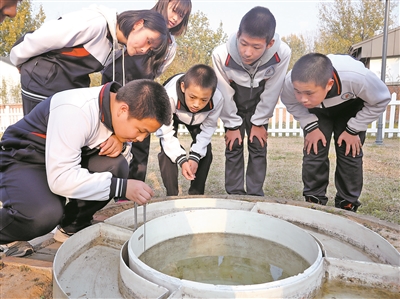 水庫地區(qū)的降水量怎樣?蒸發(fā)量如何?這些都是水庫中學(xué)學(xué)生關(guān)注的問題,大家要在課題研究中讀懂家鄉(xiāng)的山水。瞧,學(xué)生們那股專注勁兒,儼然水環(huán)境監(jiān)測的“小專家”。樊世剛 攝