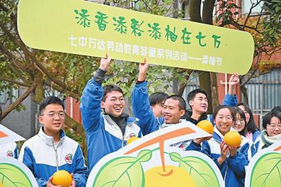 12月4日,成都七中萬達學校首屆“添柚節(jié)”開幕?!疤龛止?jié)”覆蓋了多個年級,設置了多項活動,并融入學科元素,如初一年級結合生物和美術學科,或用柚子做小零食進行義賣,或在柚子上繪出不同的圖案;初二年級則結合地理和美術學科,描繪出一幅幅中國的“水果”地圖;高三年級的學生摘下柚子與老師一同品嘗豐收的味道。