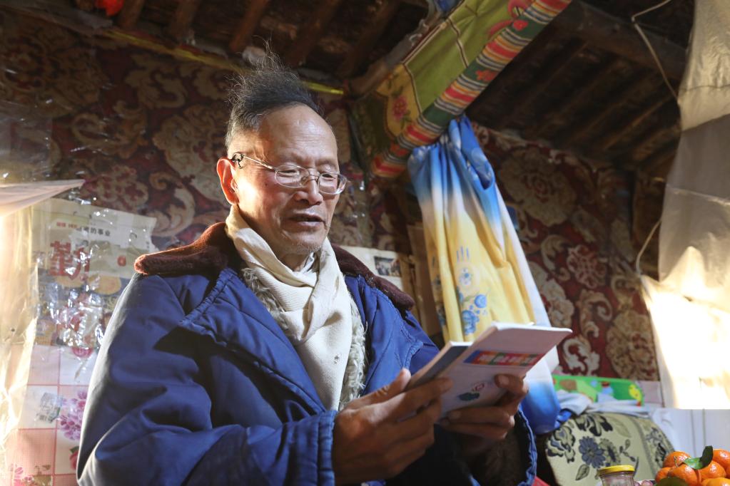 王萬(wàn)青在家中閱讀書籍。新華社記者 馬莎 攝