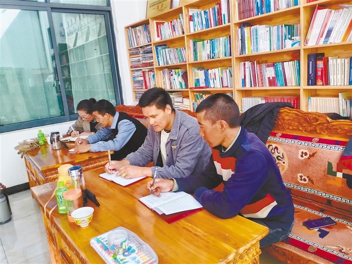 圖為薩迦縣木拉鄉(xiāng)基層工作者通過手機參與線上“微講堂”培訓班學習。記者 汪純 攝