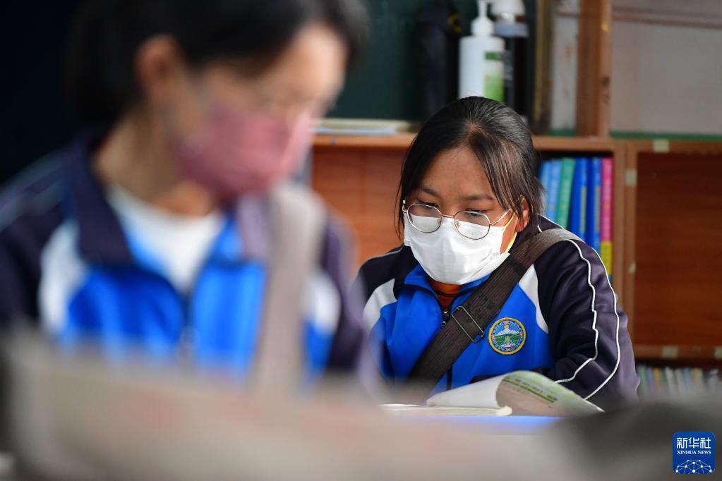 碌曲縣藏族中學的高三學生在教室里看書(8月30日攝)。新華社記者 陳斌 攝