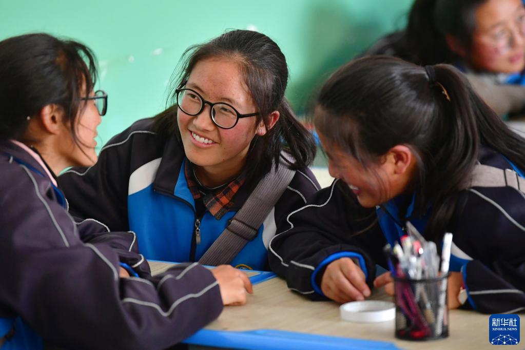 碌曲縣藏族中學的高三學生在教室里交流(8月30日攝)。新華社記者 杜哲宇 攝